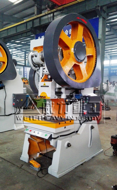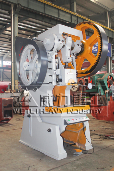 【產(chǎn)品描述】:可傾沖床是用于板料 沖壓的通用壓力機(jī), 可實(shí)現(xiàn)剪切,沖孔,落料,彎曲和淺拉伸成形等冷沖壓工序。工作時(shí)人工送料,另外配置送料裝置時(shí)可實(shí)現(xiàn)單機(jī)自動(dòng)化。 其結(jié)構(gòu)特點(diǎn)是:機(jī)身是用高強(qiáng)度鑄鐵制造,采用單盤氣動(dòng)塊式摩擦離合器和制動(dòng)器,無故障使用壽命遠(yuǎn)高于同類產(chǎn)品。滑塊帶有壓塌式保險(xiǎn)裝置,當(dāng)機(jī)床超載時(shí),保險(xiǎn)器首先被壓塌,從而保證了整機(jī)不受損壞。其特點(diǎn):