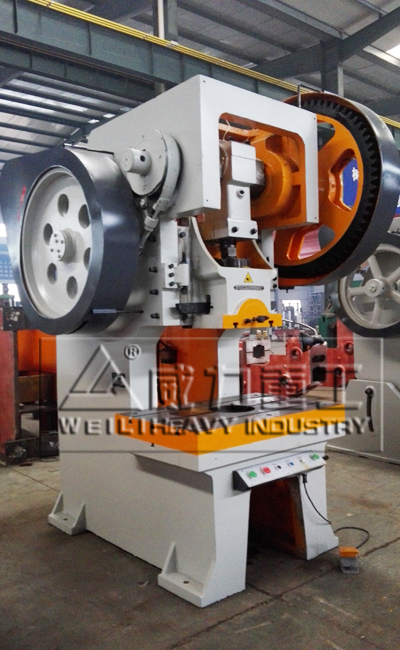 【產品描述】:開式固定臺沖床(壓力機)為J21系列沖床。 J21系列經濟型開式固定臺壓力機是屬于薄板沖壓的通用壓力機,適用于各種冷沖壓工藝,如剪切、沖孔、落料、彎曲和淺拉伸工作。其結構特點如下: ? 曲軸橫向放置,齒輪為外置敞開式,維修方便; ?采用組合式剛性連鎖干式氣動摩擦離合器制動器,傳遞扭矩大,轉動慣量小,安裝、維修方便。?滑塊為一鑄造箱形結構,滑塊內安裝壓