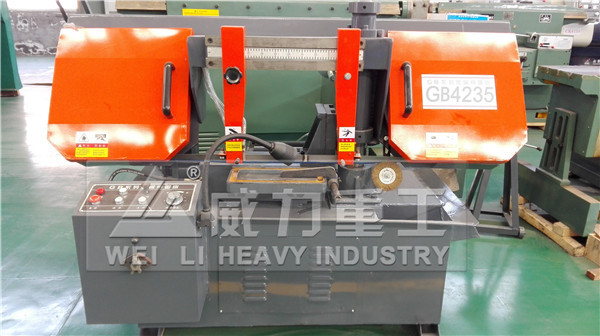 【產(chǎn)品描述】:GB4235臥式帶鋸床 主要特點: 切削速度液壓控制,無級調(diào)速; 導向塊結(jié)構(gòu)科學合理,延長鋸條的使用壽命; 雙立柱結(jié)構(gòu),操作平穩(wěn); 鋸切穩(wěn)定,精度高; 工作夾緊采用液壓夾緊,操作方便。 產(chǎn)品常用名稱: 鋸床,帶鋸床,臥式帶鋸床,金屬帶鋸床,雙柱式帶鋸床,GB4235帶鋸床 。 雙立柱臥式帶鋸床 是集機、電、液為一體的半自動帶鋸床,是鋸切較大直徑的黑色金屬和有色金屬